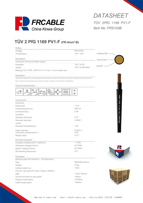 依據組件功率大小的不同,該類連接電纜有截面積為2.5m㎡、4.0m㎡、6.0m㎡等三種規(guī)格。
